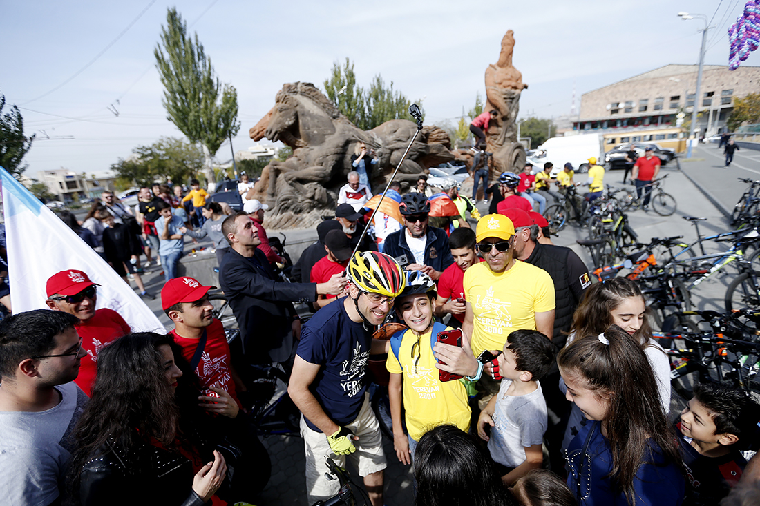 Հարյուրավոր հեծանվորդներ 2800-ամյա Երևանի տոնական մթնոլորտի շունչն ու ջերմությունը զգացել են «Սիրահարդ եմ, Երևան» խորագրով կազմակերպված հեծանվավազքի ընթացքում: