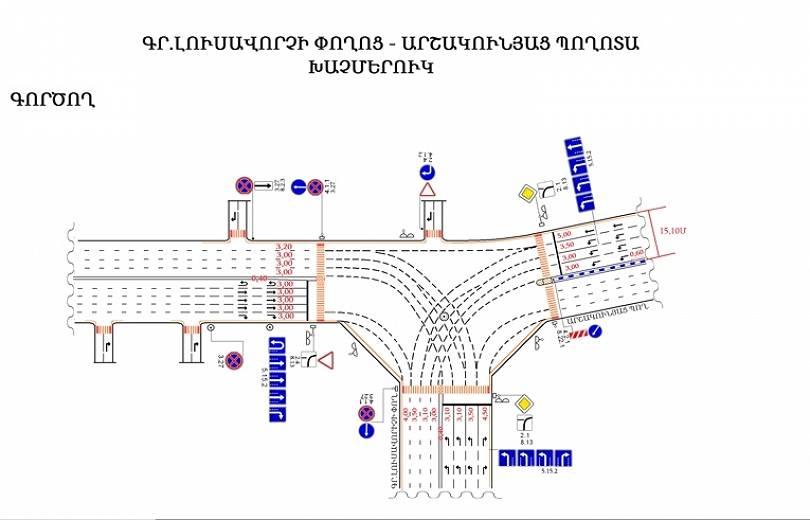 Փոփոխության արդյունքում՝ Արշակունյաց պողոտայի դեպի նշված խաչմերուկ ուղղության երթեւեկային մասի մոտ 100 մետր հատվածում կկազմակերպվի եւս մեկ՝ 5-րդ երթեւեկելի գոտի եւ երթեւեկությունը կկազմակերպի այնպես, որ 1-ին գոտիով կարելի կլինի երթեւեկել միայն դեպի Ագաթանգեղոսի փողոց, 2-րդ գոտիով՝ միաժամանակ դեպի Ագաթանգեղոսի եւ Գր. Լուսավորիչի փողոցներ, իսկ 3-րդ, 4-րդ ու 5-րդ գոտիներով՝ միայն դեպի Գր. Լուսավորիչի փողոց: