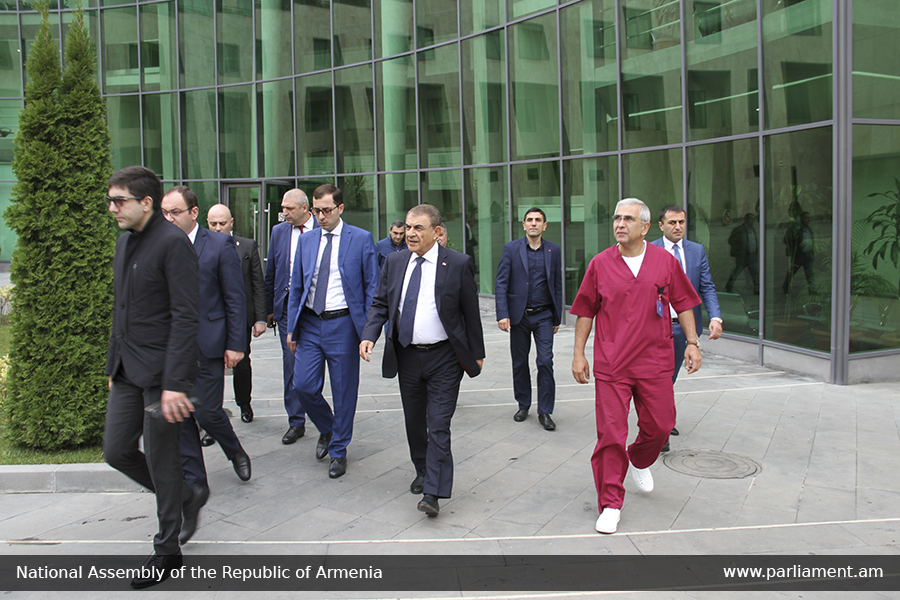 Այցի ընթացքում խորհրդարանի ղեկավարն ուռուցքաբանական կենտրոնում հանդիպել է նաև «Արաբկիր» բժշկական կենտրոնի՝ Երեւանից այցելած մասնագետներին, որոնք վերջին օրերին արտասահմանյան գործընկերների հետ անվճար իրականացնում են բժշկական ծառայություններ։ Խորհրդարանի ղեկավարին և արտասահմանցի հյուրերին ուռուցքաբանական կենտրոնի ղեկավարը մանրամասն ներկայացրել է կենտրոնի բժշկական սարքավորումների համալրվածությունը, որն ամբողջությամբ համապատասխանում է ժամանակակից չափանիշներին։