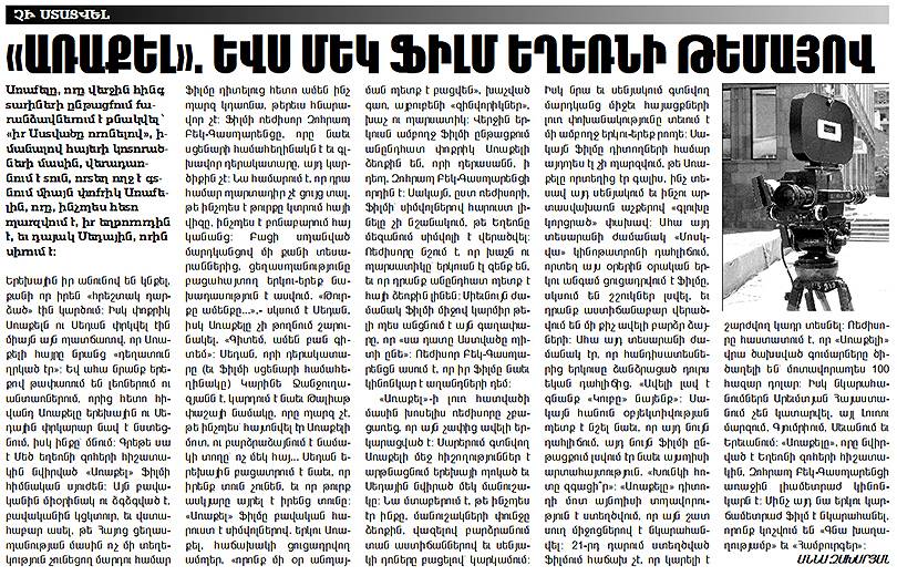 Տպագրվել է «Հայկական Ժամանակ» օրաթերթի՝ 2005 թվականի հոկտեմբերի 20-ի համարում