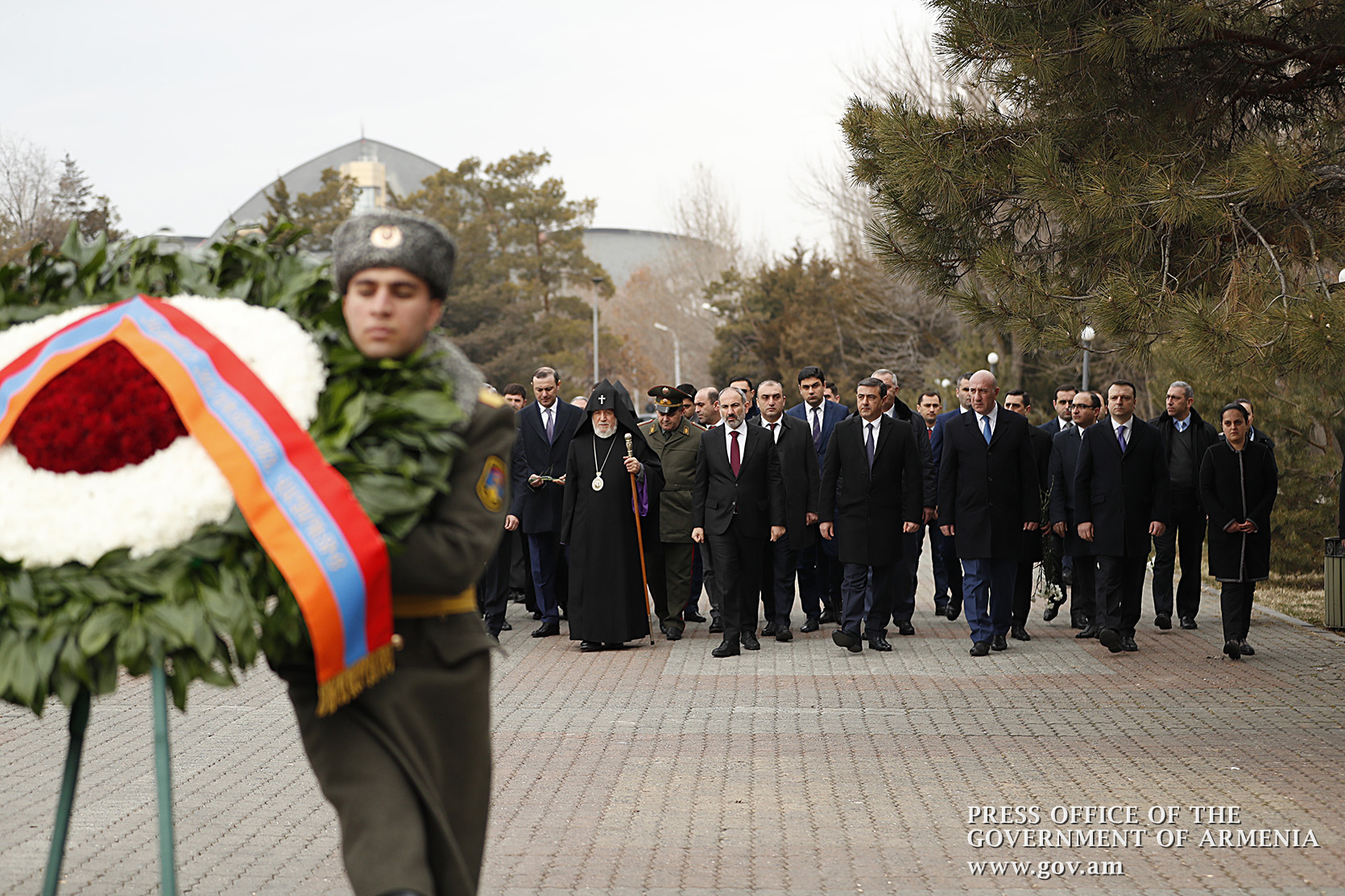 ՀՀ կառավարության լրատվական ծառայությունից հայտնում են, որ վարչապետը ծաղկեպսակ է դրել և ծաղիկներ խոնարհել զոհերի հիշատակը հավերժացնող հուշարձաններին: