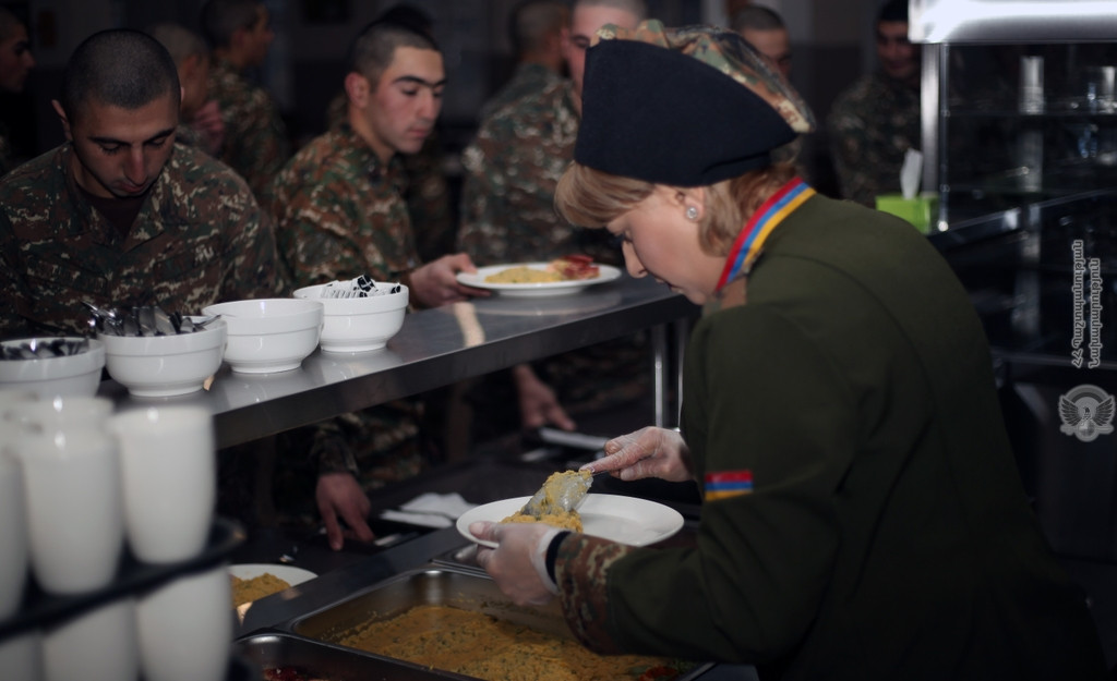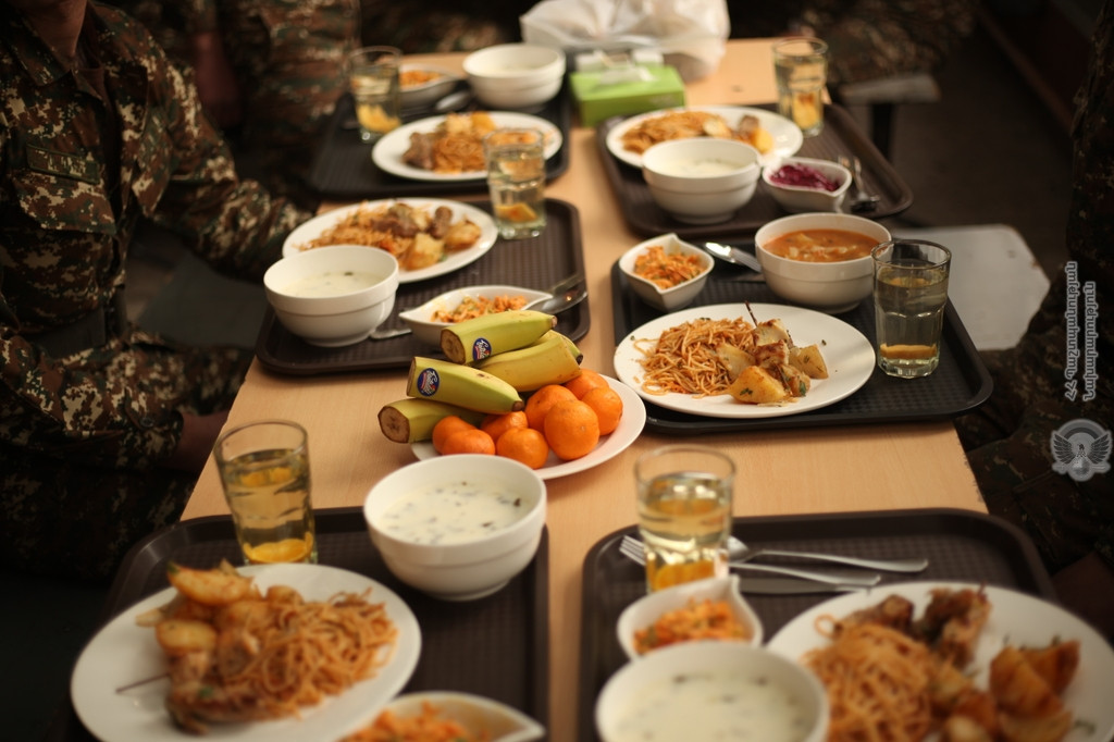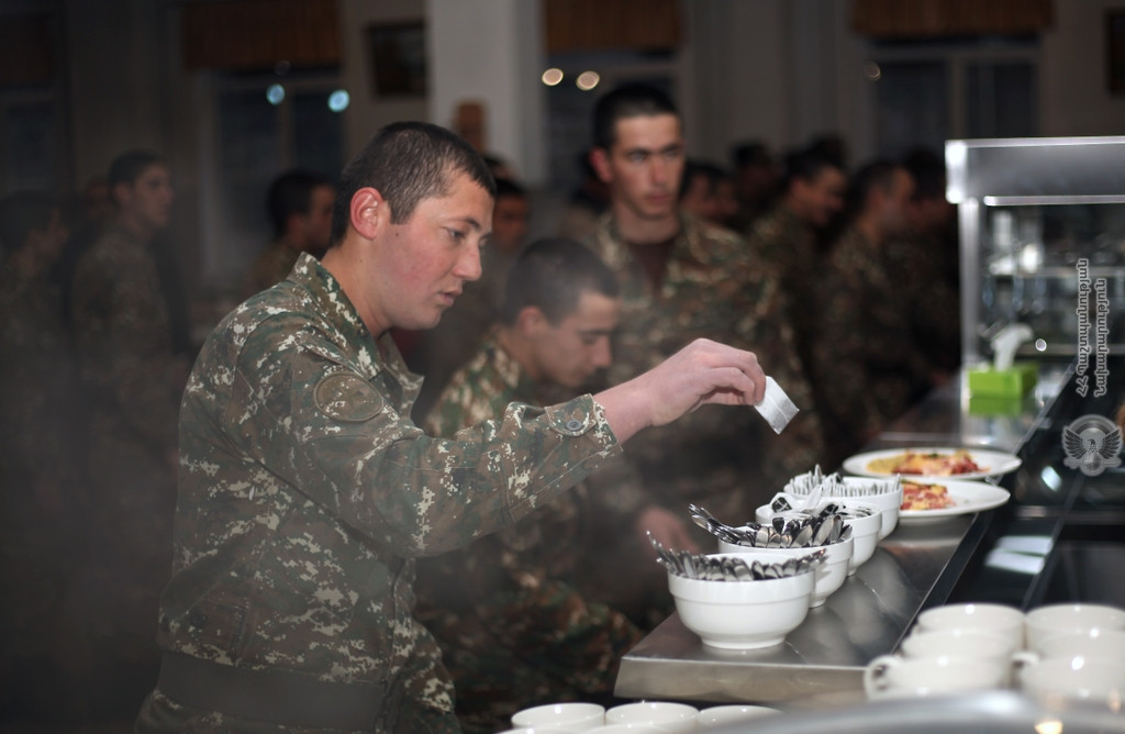 ՊՆ տեղեկատվության եւ հասարակայնության հետ կապերի վարչությունից հայտնում են, որ զինվորական ճաշարանում տեղադրվել են ժամանակակից խոհանոցային սարքավորումներ, ներդրվել է հոսքագծային սպասարկման տարբերակը: Մատակարարող ընկերությունը զինծառայողներին առաջարկում է բազմազան ճաշատեսակներ, աղցաններ, միրգ, քաղցրավենիք և հյութեր։