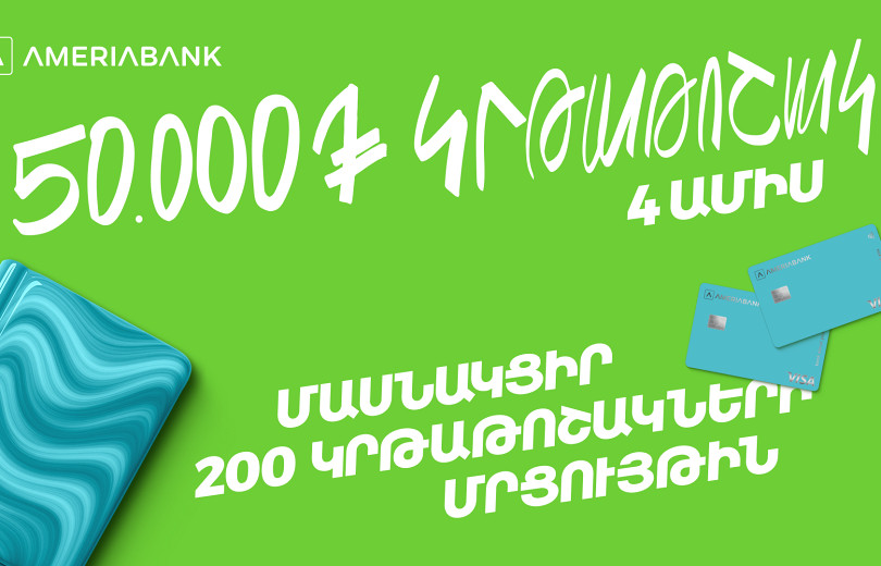 Ամերիաբանկը երկրորդ տարին անընդմեջ հայտարարում է «Իմ Հայաստան, իմ ապագա» կրթաթոշակների մրցույթ, որը նախատեսված է Հայաստանի պետական և մասնավոր բոլոր բուհերի ուսանողների համար: Մրցույթի նպատակն է բացահայտել և խրախուսել ակտիվ, ճկուն և պայծառ մտածելակերպ ունեցող ուսանողներին, որոնցից լավագույն 200-ը 4 ամիս շարունակ կստանա ամսական 50,000 ՀՀ դրամ կրթաթոշակ 2025-2026 ուսումնական տարվա երկրորդ կիսամյակի ընթացքում: