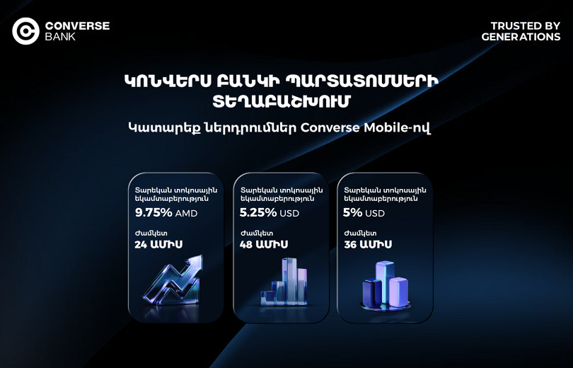Կոնվերս Բանկը հայտարարում է իր պարտատոմսերի՝ ՀՀ դրամով մեկ և ԱՄՆ դոլարով երկու տրանշի (սերիա) տեղաբաշխման մեկնարկը։ Տեղաբաշխումը տեղի կունենա 2025թ․ նոյեմբերի 18-ից մինչև 2026թ․ փետրվարի 18-ը՝ հետևյալ պայմաններով.