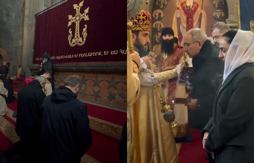 Վարչապետը տիկնոջ հետ ժամանեց Երևանի Սուրբ Գրիգոր Լուսավորիչ մայր եկեղեցի՝ մասնակցելու Սուրբ Ծննդյան պատարագին