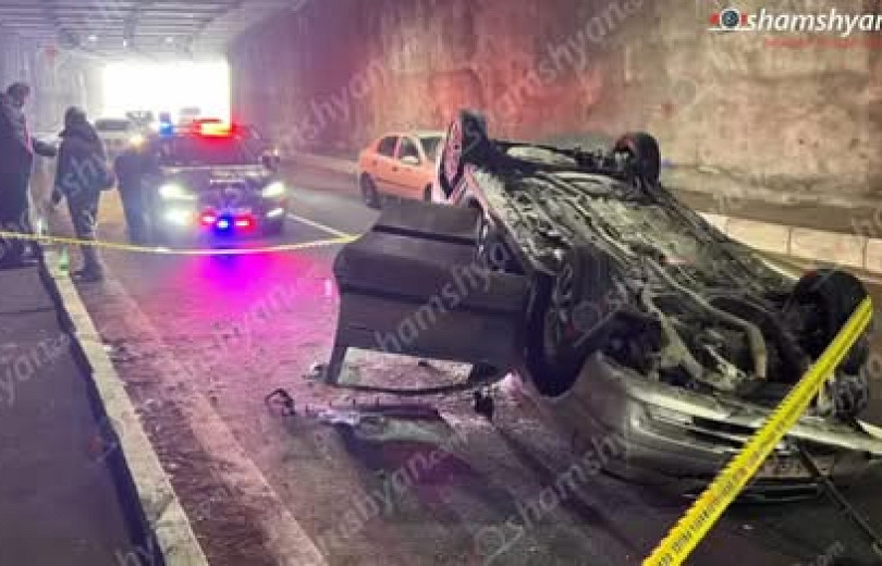 «Օպել»-ը Էջմիածնի թունելում գլխիվայր շրջվել, հայտնվել է ճանապարհի մեջտեղում