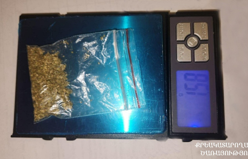 ՀՀ ԱՆ «Նուբարաշեն» քրեակատարողական հիմնարկի հերթապահ խմբի ծառայողները խուզարկության են ենթարկել հիմնարկ ընդունված կալանավորված անձին: Արդյունքում՝ նրա տաբատի գրպանում գտնվող ծխախոտի տուփի միջից հայտնաբերվել են 6 ծխախոտի գլանակ, 1 ապակյա կաթուցիչ՝ թմրանյութի նմանվող զանգվածի ծխեցված հետքերով, ինչպես նաև պոլիէթիլենային տոպրակի մեջ լցված դեղնականաչավուն, թմրանյութի նմանվող խոնավ, բուսական զանգված՝ ընդհանուրը 1.58 գրամ քաշով: