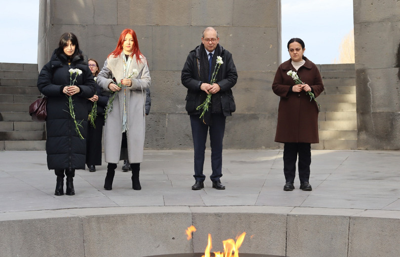 Ֆրանսիայից ժամանած հյուրերը ծաղիկներ են դրել անմար կրակի մոտ և մեկ րոպե լռությամբ հարգել Հայոց ցեղասպանության անմեղ զոհերի հիշատակը: