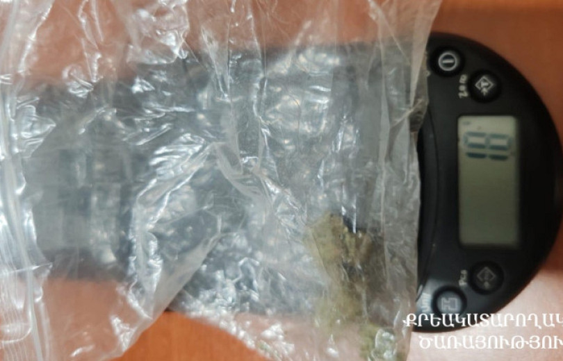 Խուզարկության արդյունքում կնոջ մոտից հայտնաբերվել է ընդհանուր 5,5 գրամ քաշով մարիխուանա տեսակի թմրամիջոցին նմանվող զանգված։