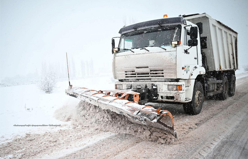 Ճանապարհների սպասարկման համար պատասխանատու կազմակերպությունները շարունակում են ավտոճանապարհների մաքրման և աղ-ավազով մշակման աշխատանքները: