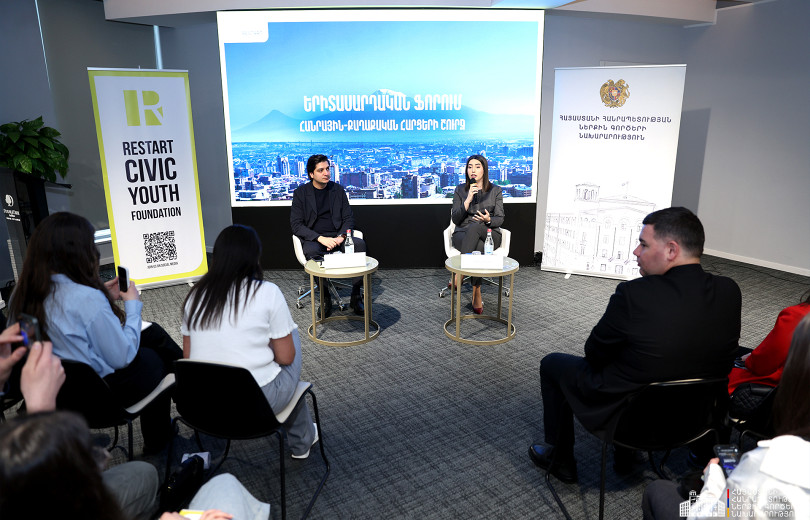 «Մարտի 28-ին «Ռեստարտ» քաղաքացիական-երիտասարդական հիմնադրամի նախաձեռնած հանդիպումը համախմբել էր մայրաքաղաքի և մարզերի ավելի քան 200 երիտասարդի։ Երիտասարդական ֆորումի բանախոսը ՆԳ նախարար Արփինե Սարգսյանն էր։