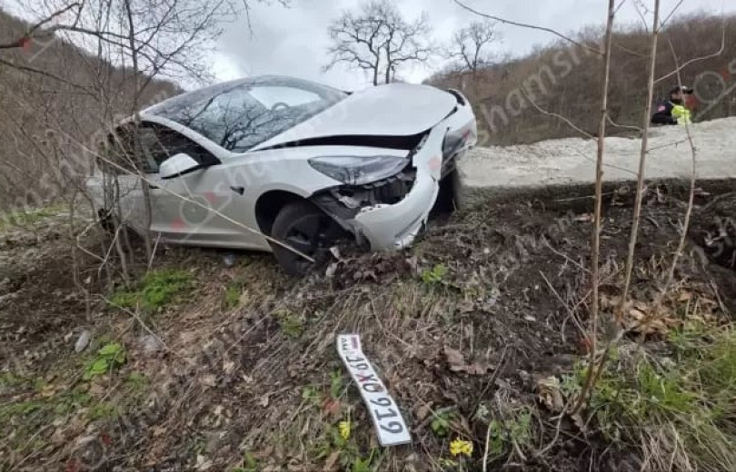«Տեսլա»-ն Դիլիջանի ոլորանում բախվել է հողաթմբին և հայտնվել երթևեկելի գոտուց դուրս