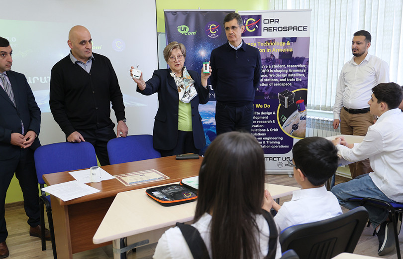 Генеральный директор Ucom Ральф Йирикян и основатель и директор CIPR Aerospace Мари Грачуи Богосян передали Ванадзорской основной школе №25 имени Виктора Амбарцумяна и Одзунской средней школе №1 имени Ованнеса Одзнеци образовательные наборы «Космос 1.0», включающие миниатюрный искусственный спутник, наземную станцию, парашютную систему и практические руководства. Специалисты CIPR Aerospace предварительно провели обучение учителей по тематическим модулям программы, после чего педагоги получили возможность проводить полноценные занятия для учеников.