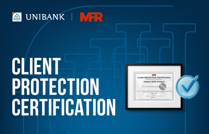Юнибанк подтвердил соответствие международным стандартам защиты клиентов. Банк получил Сертификат защиты клиентов, присуждаемый MFR — международным рейтинговым агентством, предоставляющим оценку и техническую экспертизу в сфере устойчивого финансирования.