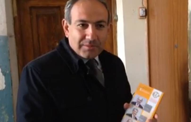 Ազգային Ժողովի պատգամավորի թեկնածու Նիկոլ Փաշինյանն այսօր «Ելք» դաշինքի բուկլետներն է բաժանել Երեւան քաղաքի Նուբարաշեն վարչական շրջանում: Նա դռնեդուռ շրջել է եւ քաղաքացիներին բաժանել է «Ելք» դաշինքի նախընտրական ծրագրի սեղմ տարբերակը բուկլետների տեսքով: