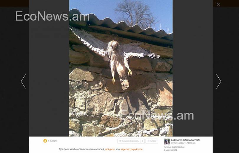 Կայքն անդրադարձել է տան պատին մեխված թռչունին: Կենդանաբանության և հիդրոէկոլոգիայի գիտական կենտրոնի աշխատակից Լյուբա Բալյանը EcoNews.am-ի հետ զրույցում նշել է, որ սպանված թռչունը ցախաքլորաորս (ճուռակ) է: