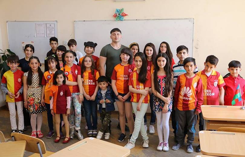 Լուսանկարի կենտրոնում Ռոշան Ազիզովն է` Բաքվի թիվ 220 դպրոցի աշակերտների հետ