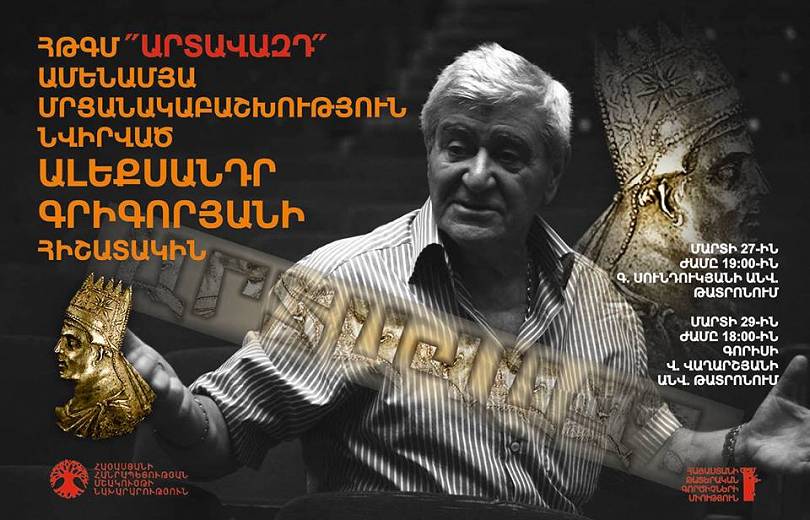 Մարտի 27-ին կայանալիք «Արտավազդ» ամենամյա թատերական մրցանակաբաշխությունն այս տարի նվիրվելու է ՀՀ Ժողովրդական արտիստ, Կոնստանտին Ստանիսլավսկու անվան ռուսական պետական դրամատիկական թատրոնի նախկին գլխավոր ռեժիսոր եւ գեղարվեստական ղեկավար Ալեքսանդր Գրիգորյանի հիշատակին: