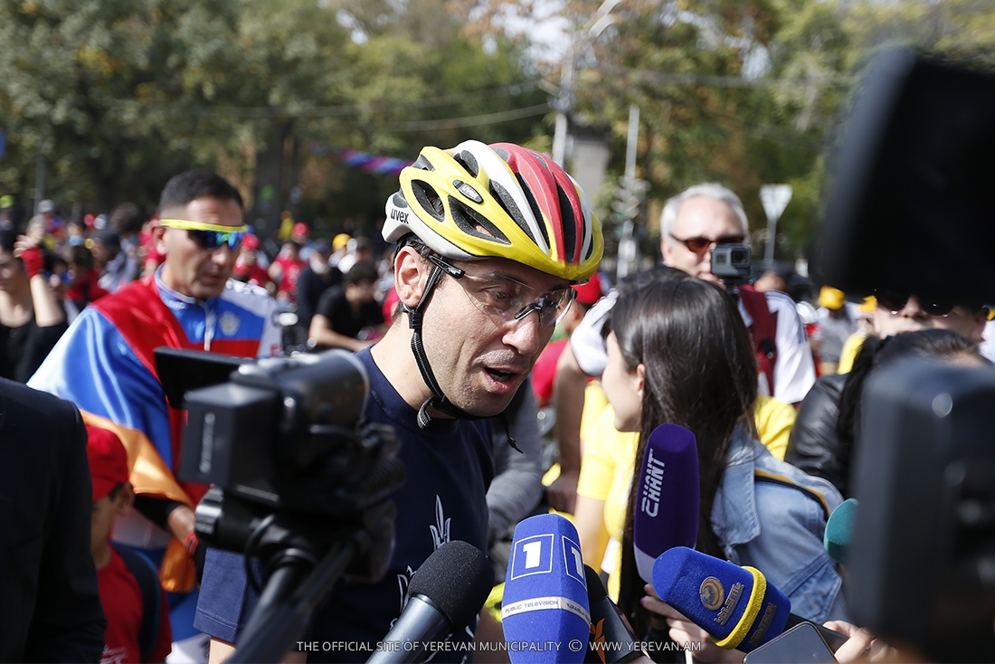 «Հեծանվավազքով վաղուց եմ զբաղվում, և այն իմ սիրելի սպորտաձևն է: Հորդորում եմ բոլորին, որպեսզի ավելի ակտիվ զբաղվեն սպորտով: Իսկ հեծանիվը ոչ միայն սպորտ է, այլև փոխադրամիջոց, որի օգնությամբ կարելի է մաքուր պահել մեր Երևանի մթնոլորտը, լինել առողջ ու նաև մի փոքր բեռնաթափել փողոցները: Ամեն ինչ անելու ենք, որպեսզի զարգացնենք հեծանվասպորտը: Հաճախ եմ հեծանվով շրջում Երևանում, սակայն քաղաքապետի պաշտոնում առաջին անգամ է, քանի որ, ցավոք, ժամանակս չէր ներում»,-նշել է Հայկ Մարությանը: