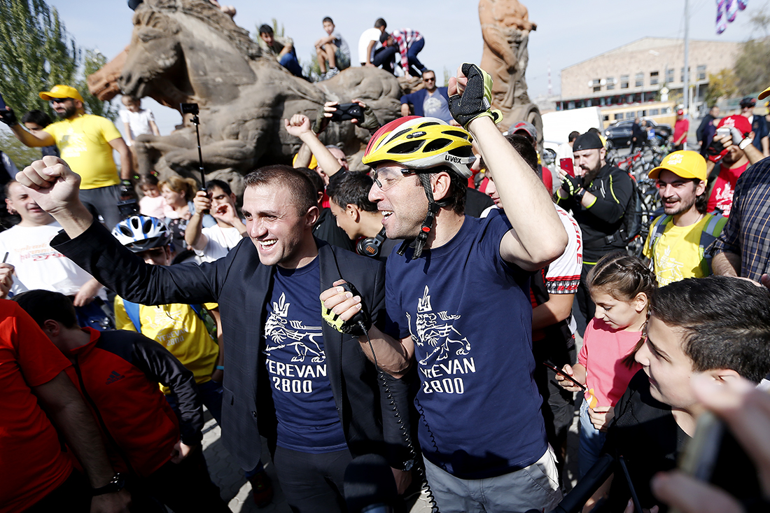 Էրեբունի-Երևան 2800 միջոցառումների շրջանակում անցկացվող հեծանվավազքը մեկնարկել է Երևանի քաղաքապետի մասնակցությամբ: Ողջունելով մասնակիցներին՝ Հայկ Մարությանը շնորհավորել ու հաջողություններ է մաղթել տոնին ամեն տարի սիրով միացող հեծանվորդներին: