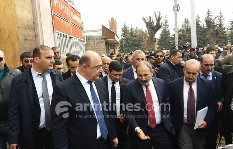 Գնացքից իջնելուց հետո բազմությունը մի կերպ ճեղքելով վարչապետը քայլեց Տիգրան Մեծ պողոտայով: Այստեղ փողոցաշինական աշխատանքներ են մեկնարկել: Գյումրեցիները դժգոհեցին քանդված մայթ ու փողոցից: Քաղաքապետ Սամվել Բալասանյանը բացատրեց, որ աշխատանքների իրականացման համար իրենք 1 տարի ժամանակ ունեն: Աշխատանքի ավարտի վերջնաժամկետը հունիսի 30-նն է: Քաղշինկոմիտեի նախագահը առկա վիճակը նորմալ գնահատեց: