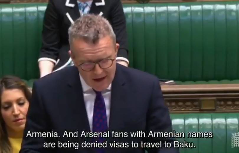 Մեծ Բրիտանիայի խորհրդարանում՝ Համայնքների պալատում, բարձրացվել է «Արսենալի» կիսապաշատպան Հենրիխ Մխիթարյանի հարցը: Ինչպես հայտնի է, նա, անվտանգության նկատառումներով, չի մասնակցելու մայիսի 29-ին Բաքվում կայանալիք Եվրոպա լիգայի 2018-19 մրցաշրջանի «Չելսի»-«Արսենալ» եզրափակչին: Սա մեծ աղմուկ է բարձրացրել համաշխարհային մամուլում, սոցիալական ցանցերում: Թեմային անդրադարձել են ու ՈՒԵՖԱ-ին եւ Ադրբեջանին քննադատել են մեծ թվով համաշխարհային խոշոր լրատվամիջոցներ: Խնդիրը զայրացրել է նաեւ Մեծ Բրիտանիայի խորհրդարանի պատգամավորներին: Լեյբորիստական կուսակցության պատգամավոր Թոմ Ուոթսոնը խորհրդարանում իր ելույթի ժամանակ պահանջել է, որ Ադրբեջանի նման երկրներում խոշոր ֆուտբոլային մրցումներ չանցկացվեն: