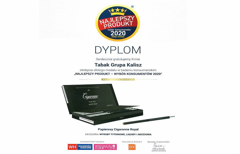 Լեհական հայտնի Commercial News ամսագրի կողմից սպառողների շրջանում կատարված հետազոտությունների համաձայն՝ ՍՊՍ «Սիգարոն» ընկերության Cigaronne Royal Slims ծխախոտը գրավել է առաջին տեղը՝ նվաճելով ոսկե մեդալ: