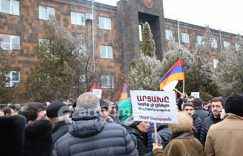 Նիստից առաջ դատարանի բակում բողոքի ակցիա են իրականացնում Սերժ Սարգսյանի աջակիցները: