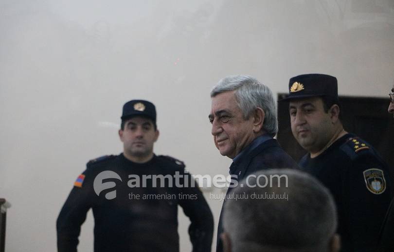 Այն պահին, երբ նախագահող դատավոր Վահե Միսակյանը ճշտում էր ամբաստանյալների ինքնությունը, ընթերցեց նաեւ Սերժ Սարգսյանի վերաբերյալ գործում առկա տվյալները: Այնուհետեւ դիմելով Սերժ Սարգսյանին՝ հետաքրքրվեց՝ ճի՞շտ էին արդյոք ներկայացված տվյալները, ինչին Սերժ Սարգսյանը պատասխանեց՝ ոտքի չկանգնելով: