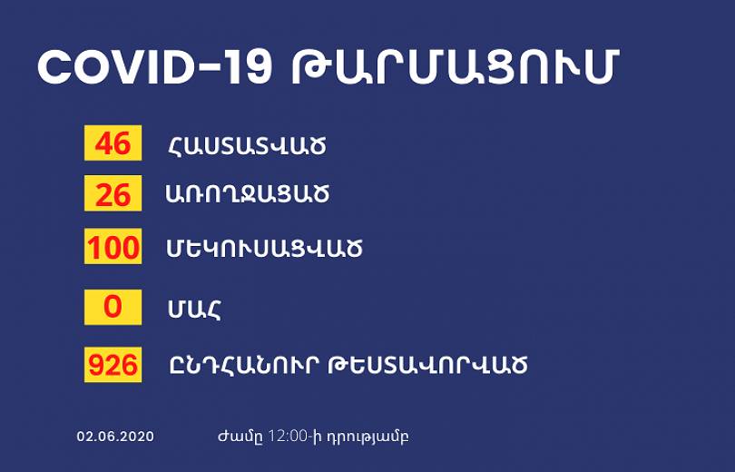 Հիշեցնենք, որ մինչ այժմ Արցախում գրանցվել է կորոնավիրուսով վարակվելու 46 դեպք: 26 քաղաքացի առողջացել է, մահվան դեպքեր չեն գրանցվել: