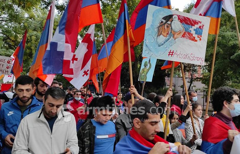 Թբիլիսիում ապրող հայերն այսօր ադրբեջանական ագրեիսան դատապարտող բողոքի ցույց իրականացրեցին։ Նպատակն էր նաեւ աջակցություն ցուցաբերել Արցախի արդար պայքարին։ Ցույցին մասնակցելու նպատակով բազմաթիվ հայեր էին ժամանել նաեւ Ջավախքից։ Ցույցը կազմակերպել էր վրաստանի հայ երիտասարդությունը, որոնք ելույթներ ունեցան «Կխվարելիի» հրապարակում։