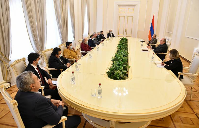 Հանրապետության նախագահ Արմեն Սարգսյանը դեկտեմբերի 15-ի երեկոյան հանդիպել է գիտության, կրթության, մշակույթի ոլորտները ներկայացնող մի խումբ մտավորականների՝ ԳԱԱ պատմության ինստիտուտի տնօրեն Աշոտ Մելքոնյանի, ԳԱԱ Մ․ Աբեղյանի անվան գրականության ինստիտուտի տնօրեն Վարդան Դևրիկյանի, ԳԱԱ փիլիսոփայության, սոցիոլոգիայի և իրավունքի ինստիտուտի տնօրեն Գևորգ Պողոսյանի, ԵՊՀ արևելագիտության ֆակուլտետի դեկան Ռուբեն Մելքոնյանի, «Հայկական հանրագիտարան» հրատարակչություն ՊՈԱԿ-ի տնօրեն և գլխավոր խմբագիր Հովհաննես Այվազյանի, Ե. Չարենցի անվան գրականության եւ արվեստի թանգարանի տնօրեն Կարո Վարդանյանի, Հայաստանի ազգային գրադարանի տնօրեն Աննա Չուլյանի, «Հովեր» պետական կամերային երգչախմբի հիմնադիր և ղեկավար Սոնա Հովհաննիսյանի, Գ․ Գյուրջիևի անվան ժողովրդական նվագարանների անսամբլի ղեկավար Լևոն Էսկենյանի, պատմաբան, արխիվագետ Ամատունի Վիրաբյանի հետ: