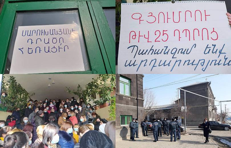 Վաղ առավոտից Գյումրու համար 25 դպրոցում մեծ իրարանցում էր: Ուսուցիչները գործադուլ, ծնողները դասադուլ էին արել, փակել դպրոցի մուտքը, որպեսզի նոր տնօրենը չկարողանա ներս մտնել: