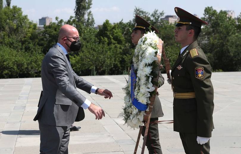 Երկօրյա այցով Հայաստան ժամանած Եվրոպական խորհրդի նախագահ Շառլ Միշելը փոխվարչապետի պաշտոնակատար Մհեր Գրիգորյանի ուղեկցությամբ այցելել է Ծիծեռնակաբերդի հուշահամալիր: Հարգանքի տուրք մատուցվել Հայոց ցեղասպանության զոհերի հիշատակին: