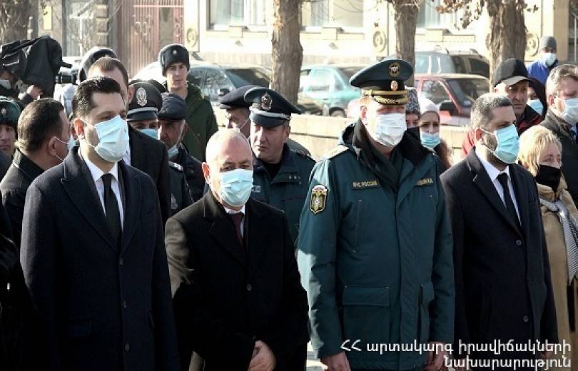 Իսկ 88-ի երկրաշարժի էպիկենտրոնում՝ Սպիտակ քաղաքում արհավիրքի զոհերի հիշատակին իրենց խոնարհումն են բերել ՀՀ ԱԻՆ ՓԾ տնօրեն Արմեն Գասպարյանը և Հայաստանում Ճապոնիայի արտակարգ և լիազոր դեսպան Ֆուկուշիմա Մասանորին, Տարածքային կառավարման և ենթակառուցվածքների նախարար Գնել Սանոսյանը: Նրանց ուղեկցել են Լոռու մարզպետ Արամ Խաչատրյանը, Սպիտակի համայնքապետի ժ/պ Քաջայր Նիկողոսյանը, ԱԻՆ ՓԾ Լոռու մարզային փրկարարական վարչության պետ, փ/ծ փոխգնդապետ Սերոբ Գաբրիելյանը, վարչության աշխատակիցները: