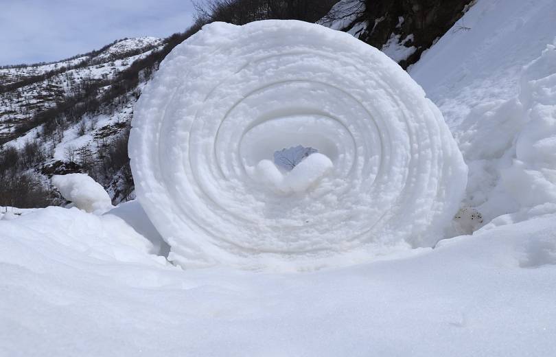Սյունիքում՝ Մեղրիի լեռնաշղթայի վրա, ձնածածկույթի ահռելի բարձրության հետևանքով ձյունը լեռնալանջերից սահել է և ընդունել այսպիսի բացառիկ տեսք։
