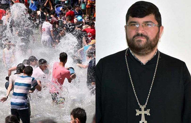 Ըստ քահանայի՝ այստեղից էլ եկել է միմյանց վրա ջուր ցանելու սովորույթը: Վերջինս միաժամանակ նկատում է՝ նախկինում միմյանց վրա ջուր ցողելով՝ մարդիկ համոզված էին, թե ազատվում են և՛ ահից, և՛ հիվանդություններից, սակայն պետք է հասկանալ, որ Վարդավառը զուտ քրիստոնեական խաղ է, ուրիշ աստվածաբանություն տոնի մեջ փնտրել չի կարելի․ «Շատերն ասում են՝ ջուր են լցնում միմյանց վրա, որ մեղքերից մաքրվեն, բայց իրականում մարդը մեղքերից ազատվում է միայն Հիսուս Քրիստոսի արյան ու մարմնի ճաշակմամբ՝ գինու ու լավաշի, չկա մեկ այլ միջով մեղքերից ազատվելու համար։ Ցանկացած բանի մեջ կարող ենք կռապաշտություն որոնել ու գտնել»։