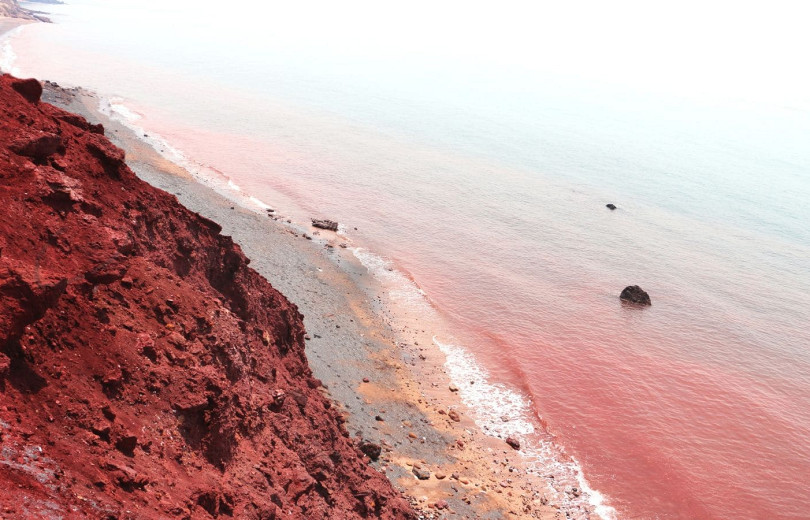 Իրանի Հորմուզ կղզում ուժեղ անձրևներից հետո երկաթով հարուստ հրաբխային հողի (հելակ) էրոզիայի պատճառով առվակներն ու լողափերը վառ կարմիր են դարձել՝ ստեղծելով «արյունոտ» առվակների և ներկված ափերի տպավորիչ տեսարան, հատկապես հայտնի «Արծաթե-Կարմիր լողափում» (Ծիածանի հովիտ):
