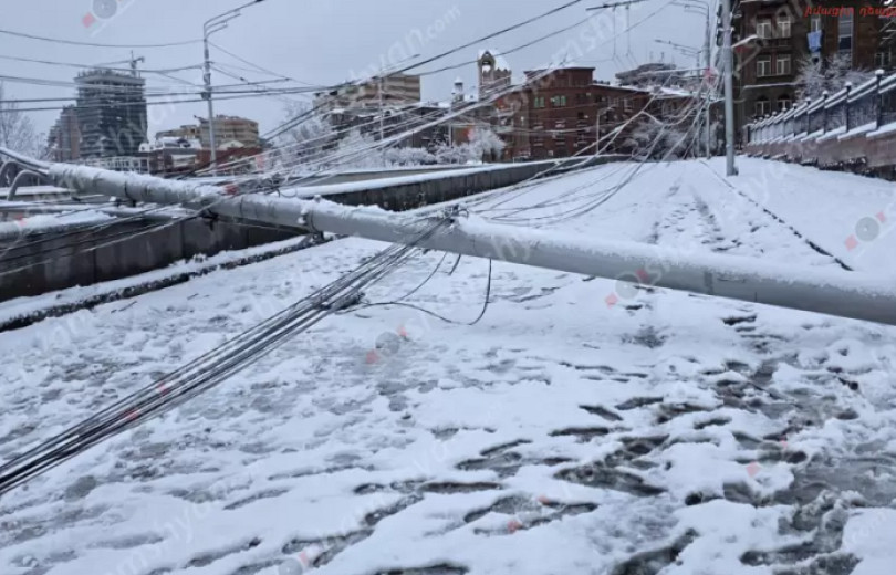 Ժամը 05։00-ի սահմաններում Մաշտոցի պողոտայում թունելի մոտ, երկաթե երկու էլեկտրասյունները հիմքից կոտրվել ու տապալվել են, հայտնում է Shamshyan.com-ը: