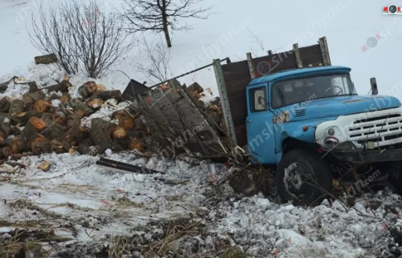 Փայտե կոճղերով բարձված «Զիլ»-ը բախվել է երկաթե արգելապատնեշներին ու հայտնվել ձորում