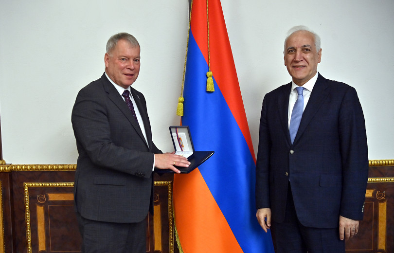Հանդիպման ավարտին Հանրապետության նախագահ Վահագն Խաչատուրյանը Մարկուս Ռիտերին պարգևատրել է Երախտագիտության մեդալով։