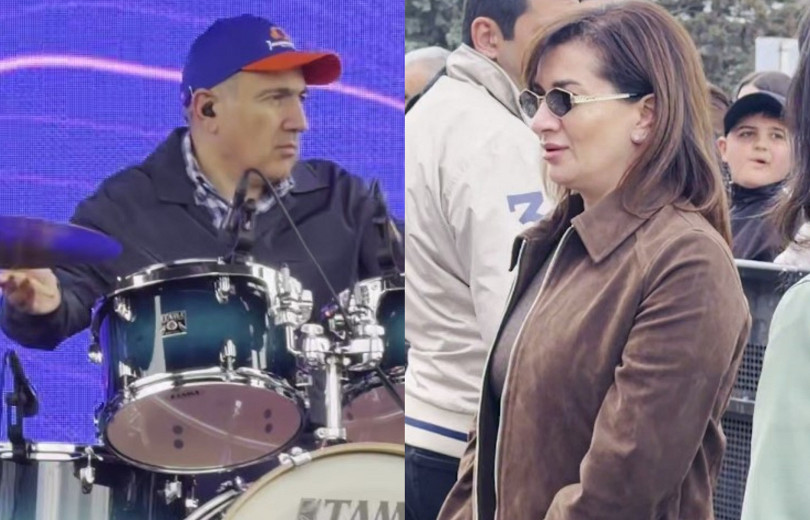 Վարչապետն ու խումբը քաղաքի կենտրոնում տեղադրված բեմում փորձեր են անում: Ի թիվս այլոց, նրանց հետևում է Աննա Հակոբյանը: