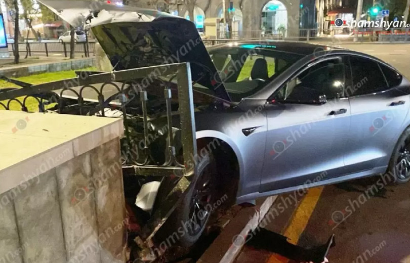 Երևանում «Տեսլա»-ի ոչ սթափ վարորդը մեքենայով անցել է բազալտե եզրաքարն ու կոտրել երկաթե պաշտպանիչ ցանկապատը