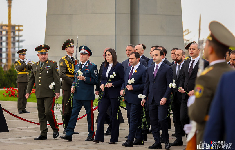 Երկրի բարձրագույն ղեկավարությունը ծաղկեպսակներ է դրել հուշակոթողին, ծաղիկներ խոնարհել Հայոց ցեղասպանության զոհերի հիշատակը հավերժացնող անմար կրակի մոտ: