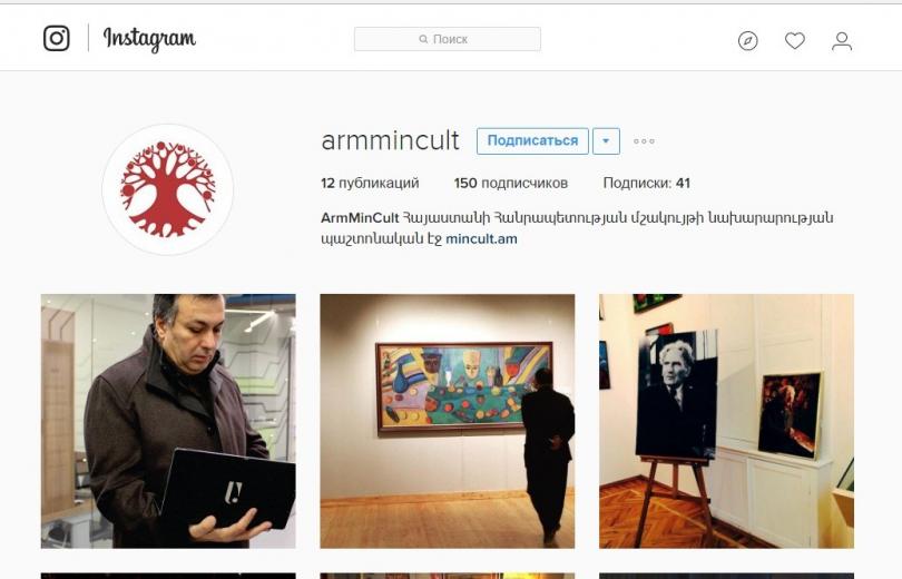 Բացի ֆեյսբուք ցոցիալական ցանցից, պարզվում է, որ մշակույթի նախարարությունը «instagram»-ում նույնպես էջ է բացել եւ դա արվել է Արմեն Ամիրյանի հանձնարարականով։