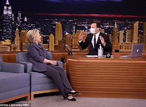 Ամերիկյան հայտնի The Tonight Show հեռուստահաղորդման վարող Ջիմի Ֆելոնը ԱՄՆ նախագահի դեմոկրատական թեկնածու Հիլարի Քլինոնին հյուրընկալելիս նրան դիմավորել է բժշկական դիմակով: