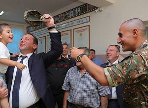 Նա մտերմիկ զրույցի է բռնվել զորակոչվող տղաների եւ նրանց ծնողների հետ, մաղթել անփորձանք ու բարի ծառայություն: