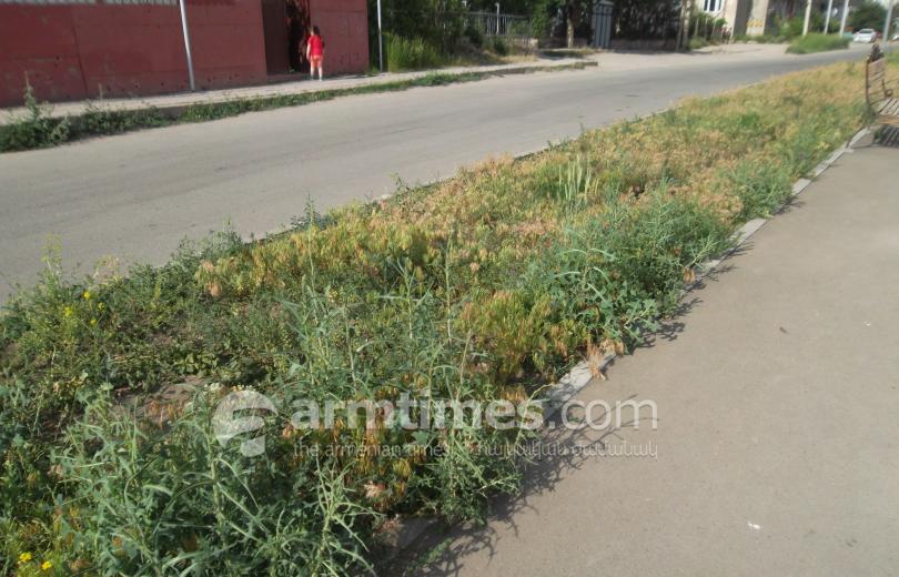 Улица имени «Героев Апрельской войны» в районе Муш-2 города Гюмри вся заросла сорной травой. По пожелтевшей и высохшей траве можно предположить, что на улице работ по благоустройству вообще не проводилось.