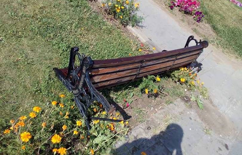 Неизвестный ночью на машине сломал скамейку, мусорную урну и повредил цветы в центре Ванадзора – на площади Айка.