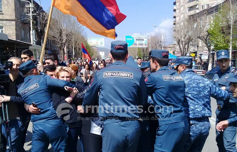 Участники акции садились на асфальт на пешеходных переходах и блокировали движение проходящих машин, полицейские удаляли их с улицы. Затем протестующие стали по нескольку раз переходить через дорогу по переходам, парализовав самый оживленный участок города – проспект Тигран Мец.